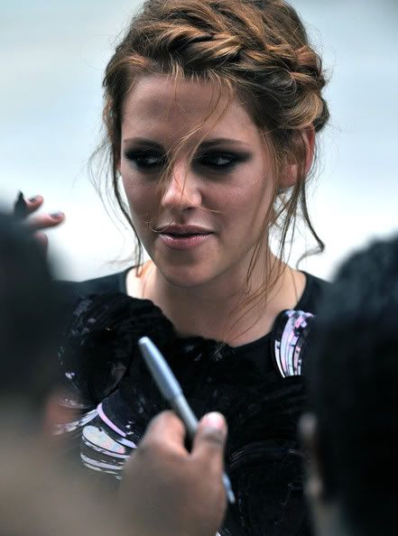But the role of Bella has truly defined her — and defined what her image means and will continue to mean to the general public. Even when she is photographed smoking pot on a doorstep, or holding hands with her boyfriend (who is NOT, or least WAS not, Robert Pattinson), or even appearing with non-Bella hair (as she’s currently filming the Joan Jett bio-pic), they cannot usurp the conflation of Stewart with her Bella persona. It’s as if Bella Swan is wearing a mullet wig — a total inverse of the actual situation, which has Stewart putting on a Bella wig to cover up her ‘real’ mullet haircut.