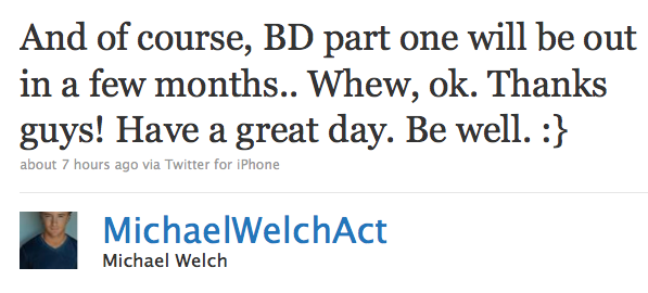 Michael Welch Tweets About ‘Breaking Dawn’
